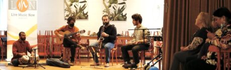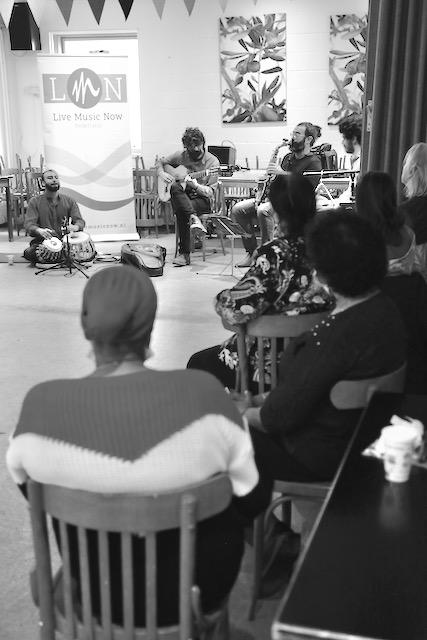Gandhaya gaf een vrolijk concert met lunch voor mantelzorgers bij Dynamo in Amsterdam. De aanwezigen dansten op muziek uit India en Braziliƫ. Dynamo is een welzijnsorganisatie die inwoners van Amsterdam stimuleert om actief deel te nemen aan de samenleving.
