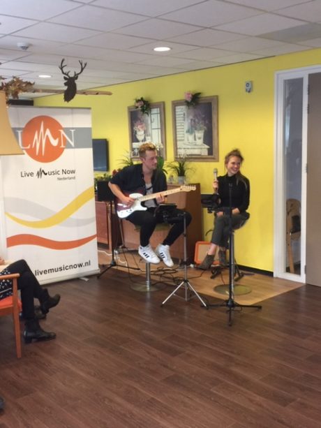 Bewoners en bezoekers van verpleeghuis Quintus in Den Haag genoten van een mooi concert van ons duo Nienke en Kees. De man van een van de bewoonsters, die zijn dementerende vrouw dagelijks kort bezoekt, was aanwezig. Zijn vrouw zong vroeger veel, nu door haar dementie niet meer. Hij was hij bij het hele concert en bleef een lange tijd daarna, want zij zong plotseling weer. Hij herkende zijn vrouw weer even. Ook na het concert constateerde de begeleiders dat het rustiger was op de afdeling dan anders. “Eind van de middag is een onrustige tijd daar, met de zorgwissel. Veel bewoners willen dan ook naar huis. Ze gaan dan vaak richting de uitgang van de gesloten afdeling. Nu was die onrust er niet.”